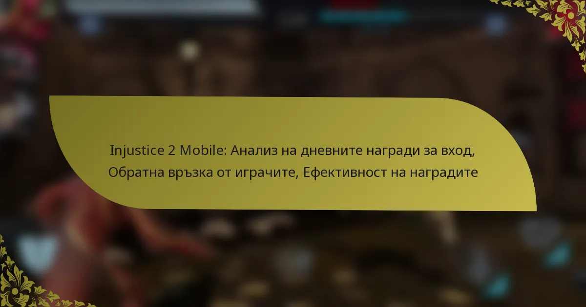 Ежедневните награди за влизане в Injustice 2 Mobile са проектирани да подобрят ангажираността на играчите, като предоставят стимули за последователна игра. В сравнение с други мобилни игри, тези награди могат да варират значително по стойност и ефективност, влияейки на начина, по който играчите взаимодействат с играта с времето.